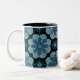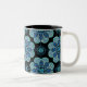 This stunning mug is going to elevate your morning brew to a whole new level. The pattern features intricate medallions that included mint, cerulean and cornflower blue. These are placed on a black background, handle and inside. Buy a few for your next tea party or book club meeting.