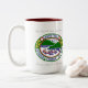 Two-tone 15 oz Coffee Mug with Canoe Trails Training Patches and Voyageur song lyrics.