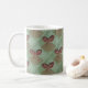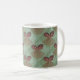This Ponderossa Pinecone Coffee or Tea mug is perfect for your Craftsman Bungalow, Woodland Cabin or Lodge. The pinecone is a classic Arts and Crafts motif. The green background on this tile is unique because of it's divet texture like hammered copper. The glaze on the cone is metallic copper and rust. This image was inspired by the artists two huge Ponderosas.