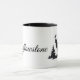 This ceramic coffee mug is shown with a art print of a elk with Yellowstone text.
