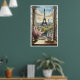 Beautiful original artwork / sketch work of a room view with Coffee overlooking Paris and the Eiffel Tower