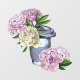 Illustration of a popcorn bucket filled with prink and cream peonies.