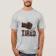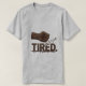 This unique and bold graphic t-shirt features a powerful fist made entirely of roasted coffee beans, literally smashing through the feeling of being "TIRED.