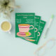 A flyer suitable for a coffee shop or cafe shop, or grand opening featuring cute and colorful retro tea cups cafe coffee illustration against a mint background.Cute, colorful and retro. All text is fully customizable to suit your needs.
