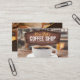 Imagine the irresistible aroma of freshly brewed coffee blending with the sweet warmth of freshly baked pastries, inviting customers to linger. If your coffee shop exudes that cosy, welcoming atmosphere, why not share it with the world through a thoughtfully designed business card? An attractive business card for coffee shops and products. The design has rustic wood touches, a faded out coffee shop background, all in rich brown tones. On the back is a spot for your location, phone number, email and website. There is badge for you to highlight a short tagline about what you offer. Designed to capture the essence of your café, this card will not only elevate your professional image but also entice clients to experience the warmth and flavour you offer.