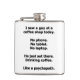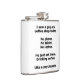 The flask itself is fine. It’s a cheap flask, obviously bought in bulk, however am prepared to overlook that. Given that it is a personalized item, I would have liked to have seen gift boxing instead of the generic packaging. Terrible printing, and/or quality. It’s a cheap, tacky vinyl. It is not cut straight and is also applied in a way that it is overhanging the bottom, causing the glue to catch on items and it will eventually roll and tear, damaging the wrap.