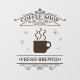 This window cling features a scrollwork frame with steaming coffee cup graphic in all dark brown. Add any two lines of text using the provided template. If preferred, add a solid background in the colour of your choice.