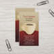 Business Cards with beige coffee cup on a dark red table. Custom text.