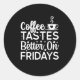 Coffee tastes better on fridays classic round sticker