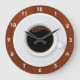 Coffee theme kitchen wall clocks with photo of a coffee cup and saucer on the clock face in this java themed wall decor clock design for a kitchen, family room or living room. Great gift for coffee or tea drinkers.