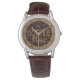 The watch looks really great!  Very sharp and well done. The leather band is really nice, though for a man's watch I think it should be longer. Unfortunately, it isn't big enough for my husband's wrist but I will get a replacement because he is very excited to wear it!
