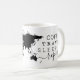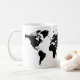 Coffee, travel, sleep repeat quote and world map on a black and white mug with editable art and text colours. Let your wanderlust shine at home and dream about your next trip while using this cute coffee mug at home. Similar coordinating design is available on other types of mugs in the Custom Paper Works Zazzle Designer Shop.
