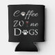 Keep your can beverages cool with a Coffee Wine Dogs Cooler. Cooler design features a fancy text for coffee with a coffee cup adornment for the letter "o", wine which contains a glass of red wine for the letter "i", and dogs with a paw print embellishment in replacement of the "o". Additional gift items available with this design as well.