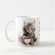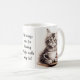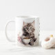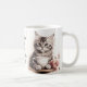 Adorable illustrations of cute kittens with a coffee cup accented with flowers, the text reads: "Mornings are for having coffee with my cat" and this can be changed to anything you like - Each side of the mug has a different kitten illustration - we offer 16 different mugs so you can mix and match creating a cute coordinated set as a lovely gift for a housewarming, Christmas or new kitten in the family.