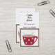 A unique card featuring a red coffee mug with steaming hot coffee and a border around design. Customise with all of your business information as desired.