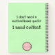 This pastel green notebook has a happy and cute cartoon dinosaur with a coffee mug and a text "Coffeezilla" on it's front cover. This kawaii dino design is hand drawn with markers and coloured pencils. The back cover text "I don't need a motivational quote! I need coffee!!" can be customised to anything else you'd like your notebook to say. The background colour is also changeable.