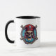 This two-tone ceramic coffee mug is shown with an image of a pirate skull on both sides of the mug.