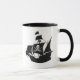 This combo black and white mug has an image of a pirate skull ship on both sides of the mug.