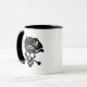 This combo black and white mug has an image of a pirate skull on both sides of the mug.