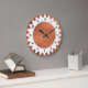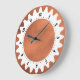 A clock with an attractive and original cogged design. 24 cogs around the edge with an hour and minute scale with nice clear stylish numerals around the inner edge. Available in a variety of different colours. However the background colour can also be customised.
