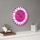 A clock with an attractive and original cogged design. 24 cogs around the edge with an hour and minute scale with nice clear stylish numerals around the inner edge. Available in a variety of different colors. However the background color can also be customized.