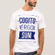 This T-shirt features the timeless Latin phrase "Cogito, ergo sum" (I think, therefore I am) in a sleek and stylish design. A perfect choice for philosophy lovers, deep thinkers, sceptics, students, and teachers, this shirt lets you wear a piece of intellectual history. Whether you're passionate about logic, reason, or simply enjoy classic Latin quotes, this comfortable and eye-catching tee makes a bold statement. Ideal for casual wear, study sessions, or as a thoughtful gift for those who appreciate the power of thought.