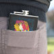 The flask itself is fine. It’s a cheap flask, obviously bought in bulk, however am prepared to overlook that. Given that it is a personalized item, I would have liked to have seen gift boxing instead of the generic packaging. Terrible printing, and/or quality. It’s a cheap, tacky vinyl. It is not cut straight and is also applied in a way that it is overhanging the bottom, causing the glue to catch on items and it will eventually roll and tear, damaging the wrap.