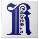 The letter K in Colchester typeface in a medium blue with a slight shadow to give it a three dimensional effect.