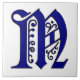 The letter M in Colechester typeface in medium blue with a slight shadow to give it a three dimensional look.