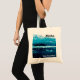 A stylised, blue monotone image of cold polar sea.. Ice hugs the coastal mountains. Customisable text reading, Alaska" also appears. Add your own additional text.