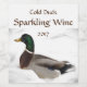 Easily customise the text on this great wine bottle label which features a mallard duck, very surprised to find himself surrounded by fluffy white snow from an early storm. His lovely green iridescent neck, yellow beak and intricately patterned wings really stand out against all that white.