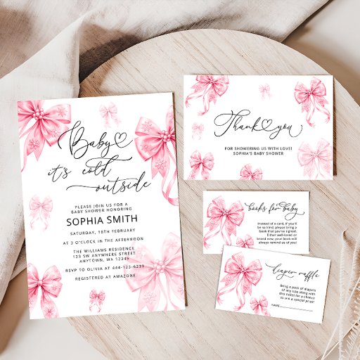 Baby It's Cold Outside Pink Bow Baby ShowerDesigned by Katsiaryna Lukyanava