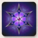 This chilly abstract was created from an Apophysis fractal turned into a six-pointed kaleidoscope. The design is overlaid with a silver-framed snowflake with inlaid deep blue, purple, and lavender set with round soft pink gems and accented with a deep pink jewel in the centre. The whole piece gives the effect of a soft, snowy light shining through a the black and midnight blue of a dark winter night.