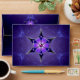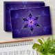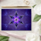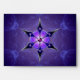 This chilly abstract was created from an Apophysis fractal turned into a six-pointed kaleidoscope. The design is overlaid with a silver-framed snowflake with inlaid deep blue, purple, and lavender set with round soft pink gems and accented with a deep pink jewel in the centre. The whole piece gives the effect of a soft, snowy light shining through a the black and midnight blue of a dark winter night.