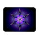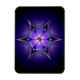 This chilly abstract was created from an Apophysis fractal turned into a six-pointed kaleidoscope. The design is overlaid with a silver-framed snowflake with inlaid deep blue, purple, and lavender set with round soft pink gems and accented with a deep pink jewel in the centre. The whole piece gives the effect of a soft, snowy light shining through a the black and midnight blue of a dark winter night.