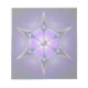 This chilly abstract was created from an Apophysis fractal turned into a six-pointed kaleidoscope. The design is overlaid with a silver-framed snowflake with inlaid deep blue, purple, and lavender set with round soft pink gems and accented with a deep pink jewel in the centre. The whole piece gives the effect of a soft, snowy light shining through a the black and midnight blue of a dark winter night.