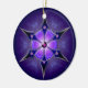 This chilly abstract was created from an Apophysis fractal turned into a six-pointed kaleidoscope. The design is overlaid with a silver-framed snowflake with inlaid deep blue, purple, and lavender set with round soft pink gems and accented with a deep pink jewel in the centre. The whole piece gives the effect of a soft, snowy light shining through a the black and midnight blue of a dark winter night.