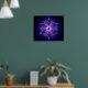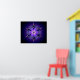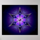 This chilly abstract was created from an Apophysis fractal turned into a six-pointed kaleidoscope. The design is overlaid with a silver-framed snowflake with inlaid deep blue, purple, and lavender set with round soft pink gems and accented with a deep pink jewel in the centre. The whole piece gives the effect of a soft, snowy light shining through a the black and midnight blue of a dark winter night.