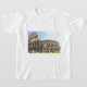 100% cotton so perfect for summer, It is a nicely designed t-shirt, the fabric is soft and the seams finished well, the body of the t shirt has no side seams. I bought a medium size for my two grandsons, aged 9 and 8 it will be slightly big on them but I would rather that than too small