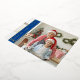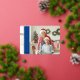 Modern holiday greeting card featuring a full-bleed customisable photo on the front with a red vertical overlay band on the left, highlighting the wording "Merry Christmas" in real gold foil. You can upload three more of your favourite family photos and your personal greeting message on the reverse of the card. You can find more greeting cards for Christmas and New year in my store Bird's Eye.