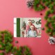 Modern holiday greeting card featuring a full-bleed customisable photo on the front with a red vertical overlay band on the left, highlighting the wording "Merry Christmas" in real gold foil. You can upload three more of your favourite family photos and your personal greeting message on the reverse of the card. You can find more greeting cards for Christmas and New year in my store Bird's Eye.