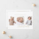 modern simple 4 photo collage script baby Announcement Card. This elegant card includes a photo collage of 3 photos on the front and 1 on the back with custom text and background.