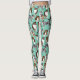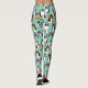 An assortment of cute Aussies decorate these leggings. This collage featuring realistic style illustrations of Australian Shepherd dogs is set against a mint green coloured background.