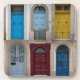 Set of colorful front doors in Valletta, Malta. Collage of colorful front doors in Malta