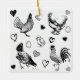 Chicken themed Christmas ornament. Cute black and white chickens and hearts and text can be personalised on the back of the ornament. Adorable holiday ornament for anyone who loves chickens! generativecontent