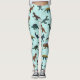 These fun and playful leggings feature a collage of photos of plastic toy dinosaurs set against a mint green background.