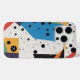 A fun and lively design of coloured paper shapes collage with black dots. Personalise with initials.