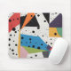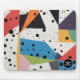 A fun and lively design of coloured paper shapes collage with black dots. Personalise with initials.