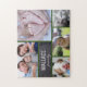 Customize this puzzle with their family photos as a fun gift. Change all the photos and family name. Green dividing lines.