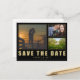 Customise this stylish modern horizontal Save the Date wedding postcard designed with bold faux gold text on black. Please note that the gold is colour print and is not an actual gold foil. Replace the three template image collage with your favourite 3 photos and change all the template information on both sides with your own. This design has a wording: "We're getting married! (With your date of marriage) And would love for you to save the date to be able to share in our special day. Formal invitation to follow." you can change the words with your own. *Photo template credits: Photo 1: © by StephaniePetraPhoto; photo 2: © by Sean McGrath; photo 3: © by Tabitha Blue.